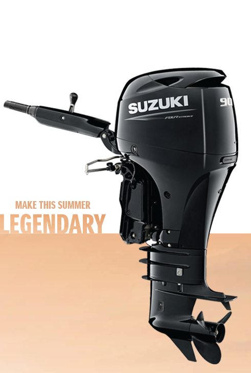 Now available on selected DF90A Tiller Outboard Models with the Make this Summer Legendary offer.